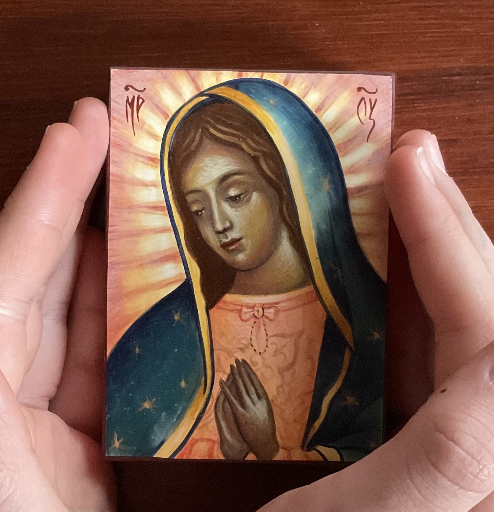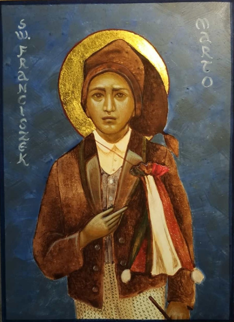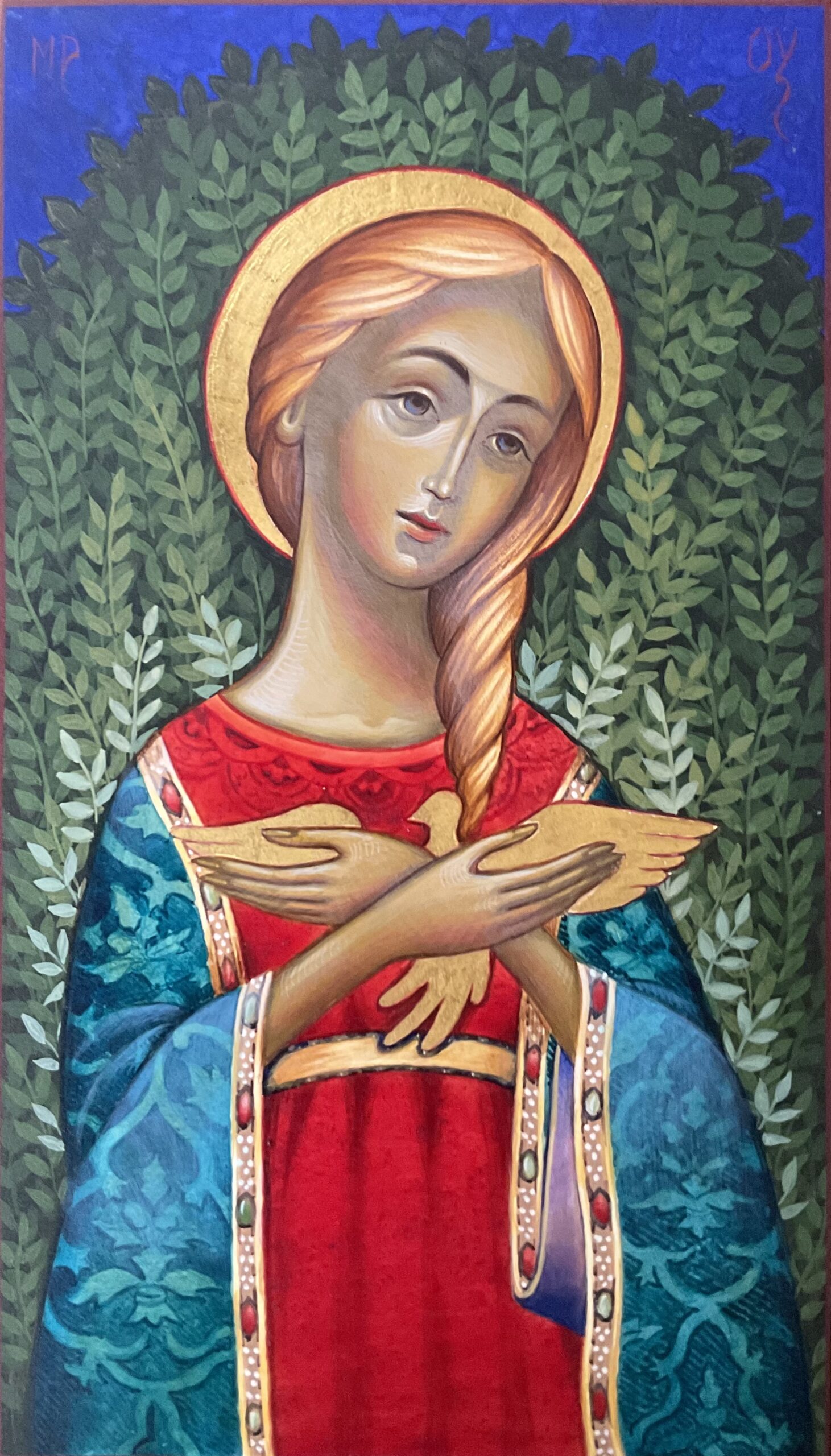 Uczyłam się kłaść złoto różnymi technikami, zgłębiałam kanon ikonopisarski, poznawałam tajniki malowania temperą kolejnych świętych postaci pod okiem doświadczonych ikonopisarzy, ćwiczyłam rękę na zajęciach z rysunku ikonicznego oraz malowania wybranych elementów ikonograficznych.