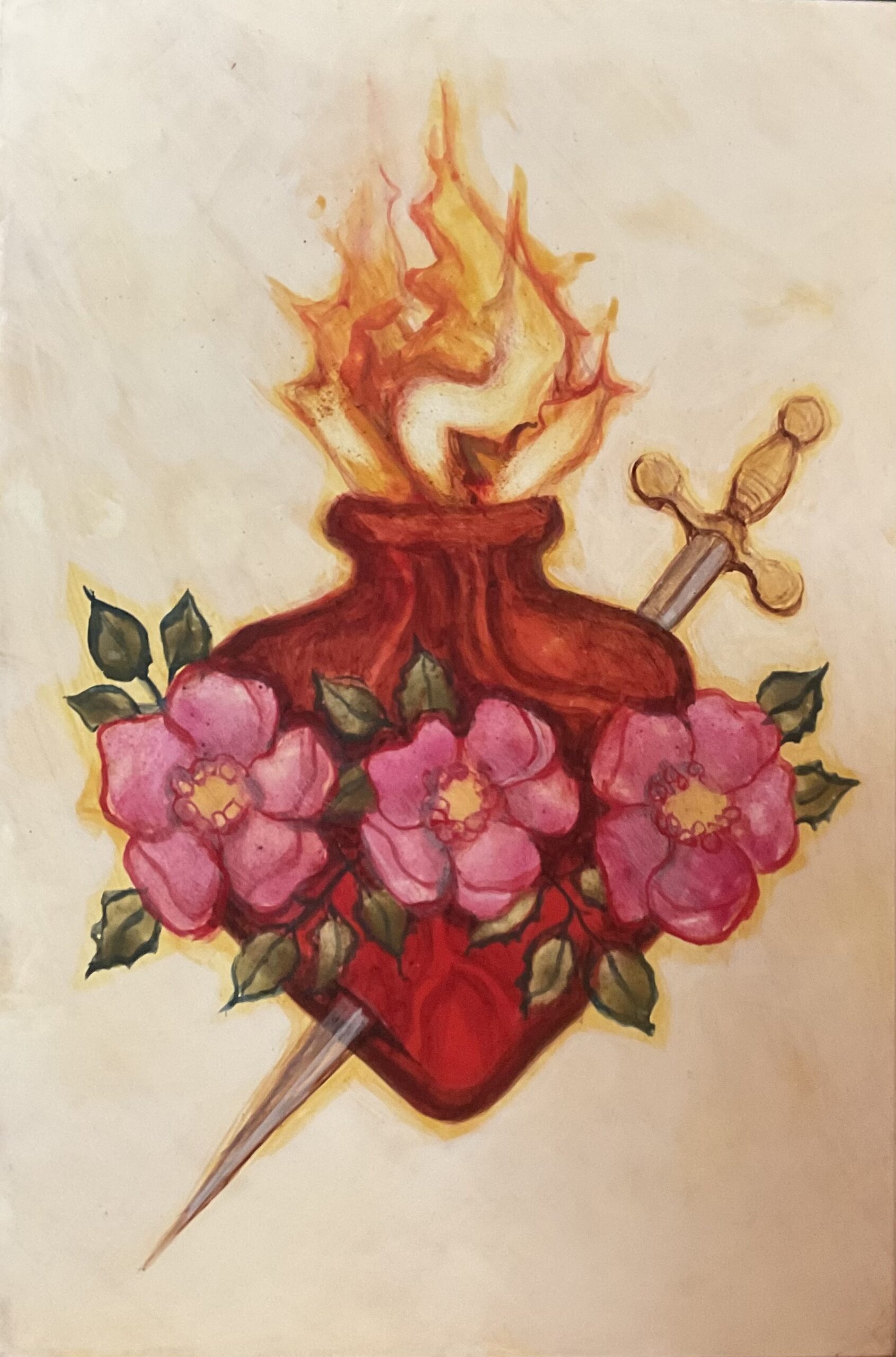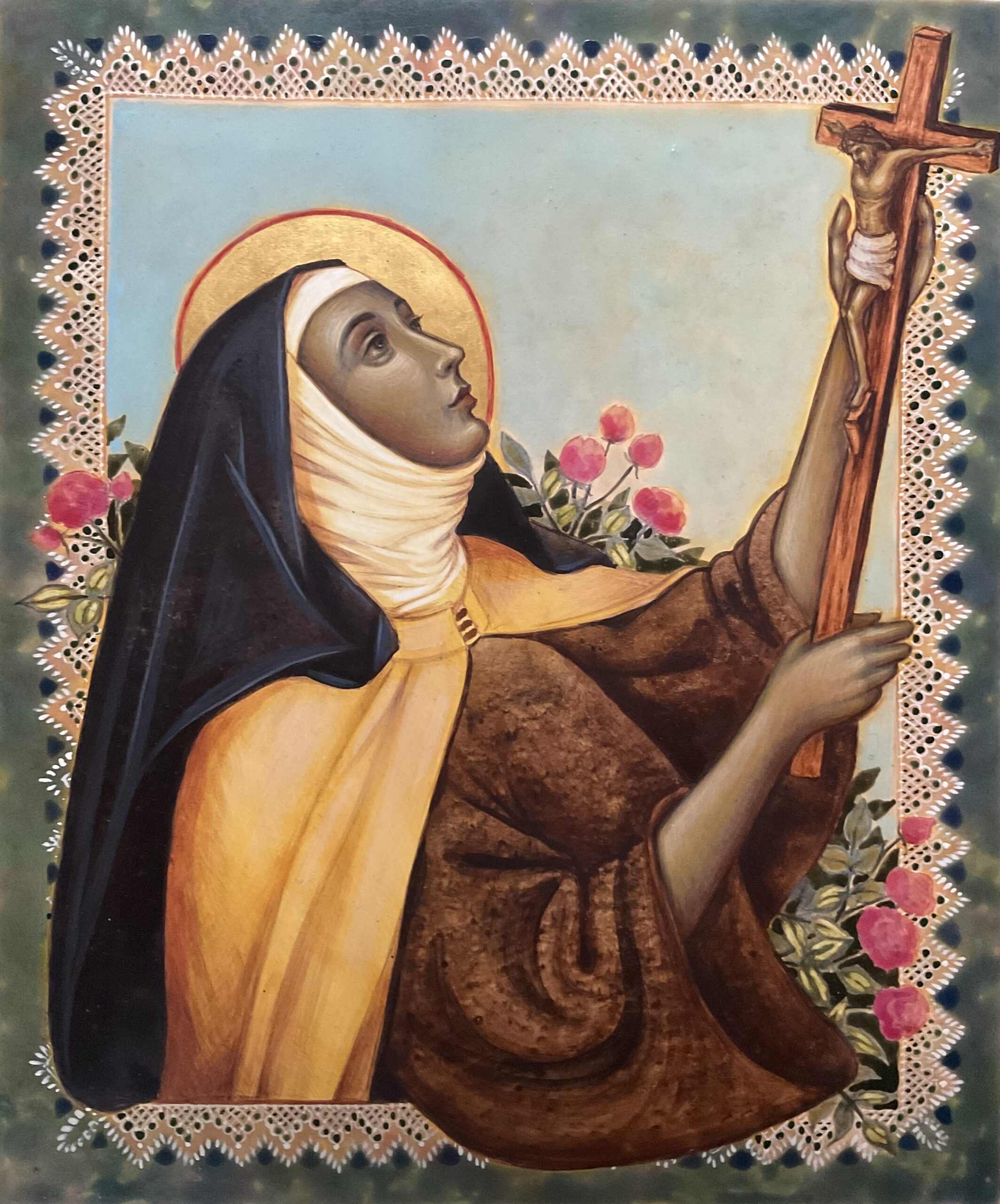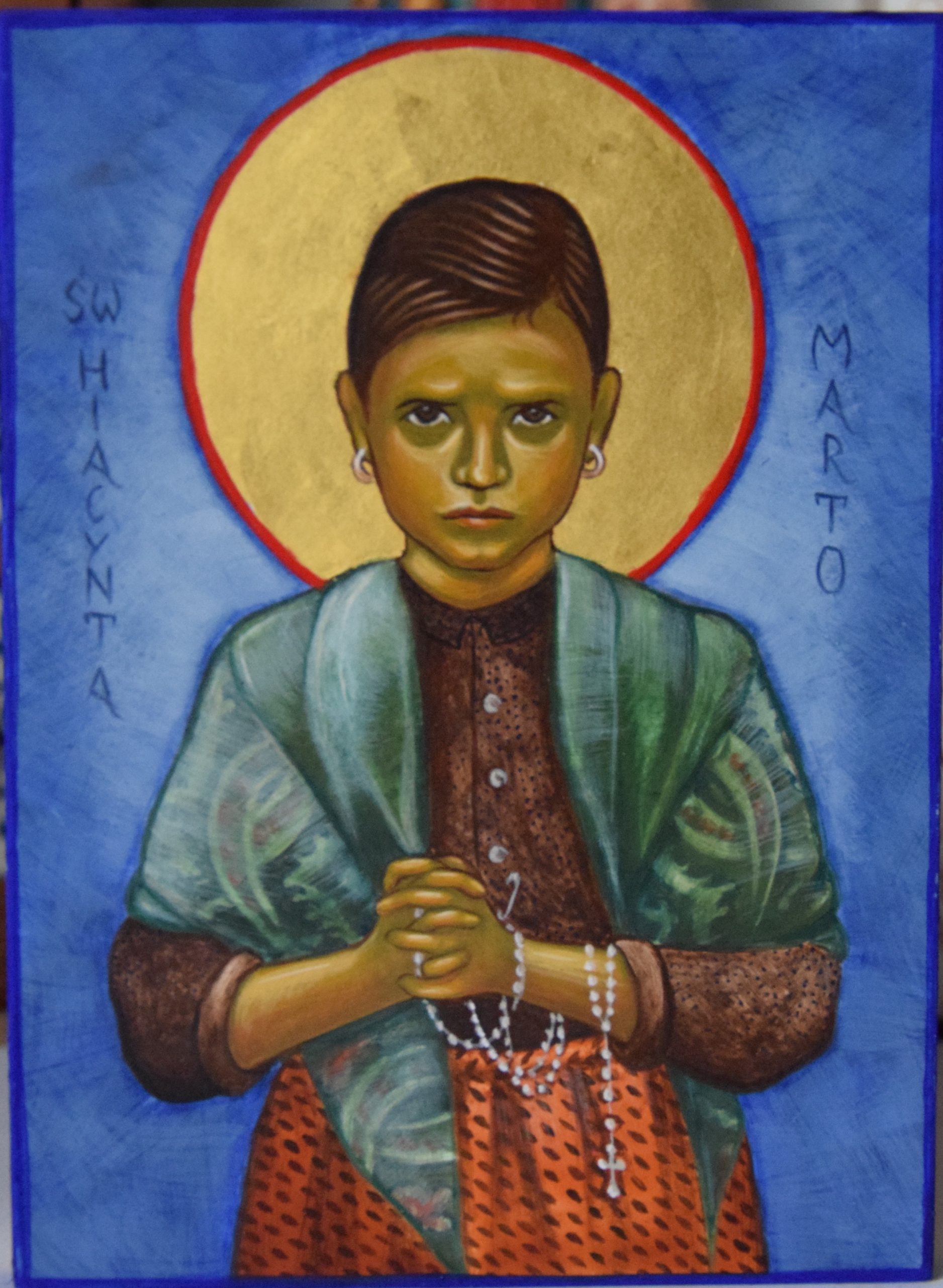 Uczyłam się kłaść złoto różnymi technikami, zgłębiałam kanon ikonopisarski, poznawałam tajniki malowania temperą kolejnych świętych postaci pod okiem doświadczonych ikonopisarzy, ćwiczyłam rękę na zajęciach z rysunku ikonicznego oraz malowania wybranych elementów ikonograficznych.